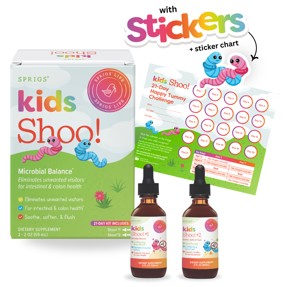 Kids are naturally curious, and their adventurous spirits often lead them to explore the world with their hands—and sometimes even their mouths! This connection to nature is wonderful for their development, but it can also introduce some unwanted guests into their systems. A digestive cleanse helps keep the body in balance by taking care of those unwanted visitors and supporting healthy digestion. Doing a cleanse once or twice a year is a great way to make sure their tummy stays happy, and their body feels its best. Kids Shoo! is made with the best herbs to be the strongest formula possible while being gentle on your little explorer's digestive system.