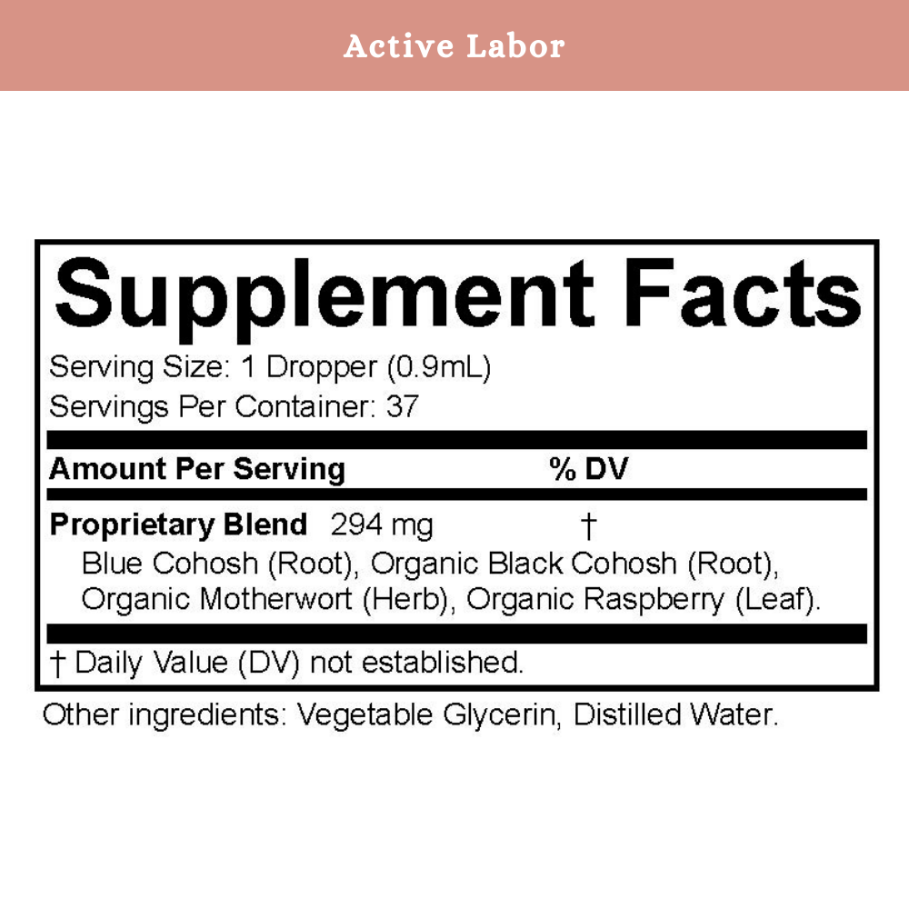 You can begin taking Active Labor at the first sign of labor to encourage healthy contractions for faster, easier labor. Active Labor may be used after the due date, once labor has begun, or if labor has stalled to help delivery progress. You can also take Active Labor after birth to support the delivery of the placenta. .