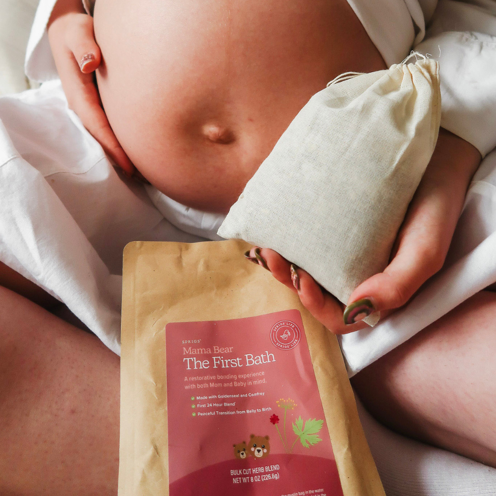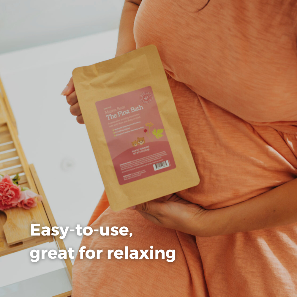 Warm herbal-infused bath’s have been a midwife's favorite to provide comfort after birth. The warmth from the water and healing properties of the herbs help to calm emotions, hydrate skin, promote feelings of love and safety, and aid in recovery. For a bonding moment, you can have a helper bring your baby into the tub to join you for a few minutes, then take baby out and continue to soak as long as you like. Containing herbs traditionally used for perineal discomfort, The First Bath has zero chemicals, artificial preservatives, dyes, or fragrances. Most commonly used in the tub, The First Bath can also be added to a sitz bath bowl or used to make herbal infused padsicles for all day cooling relief.