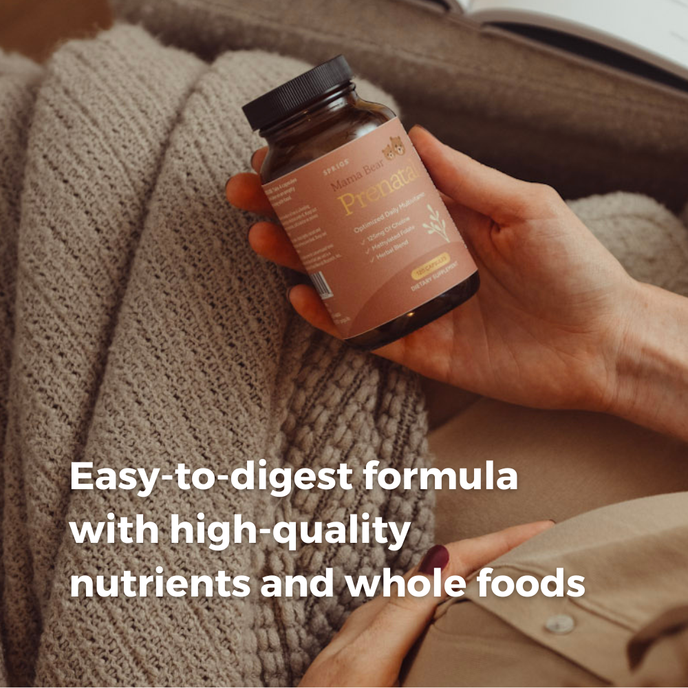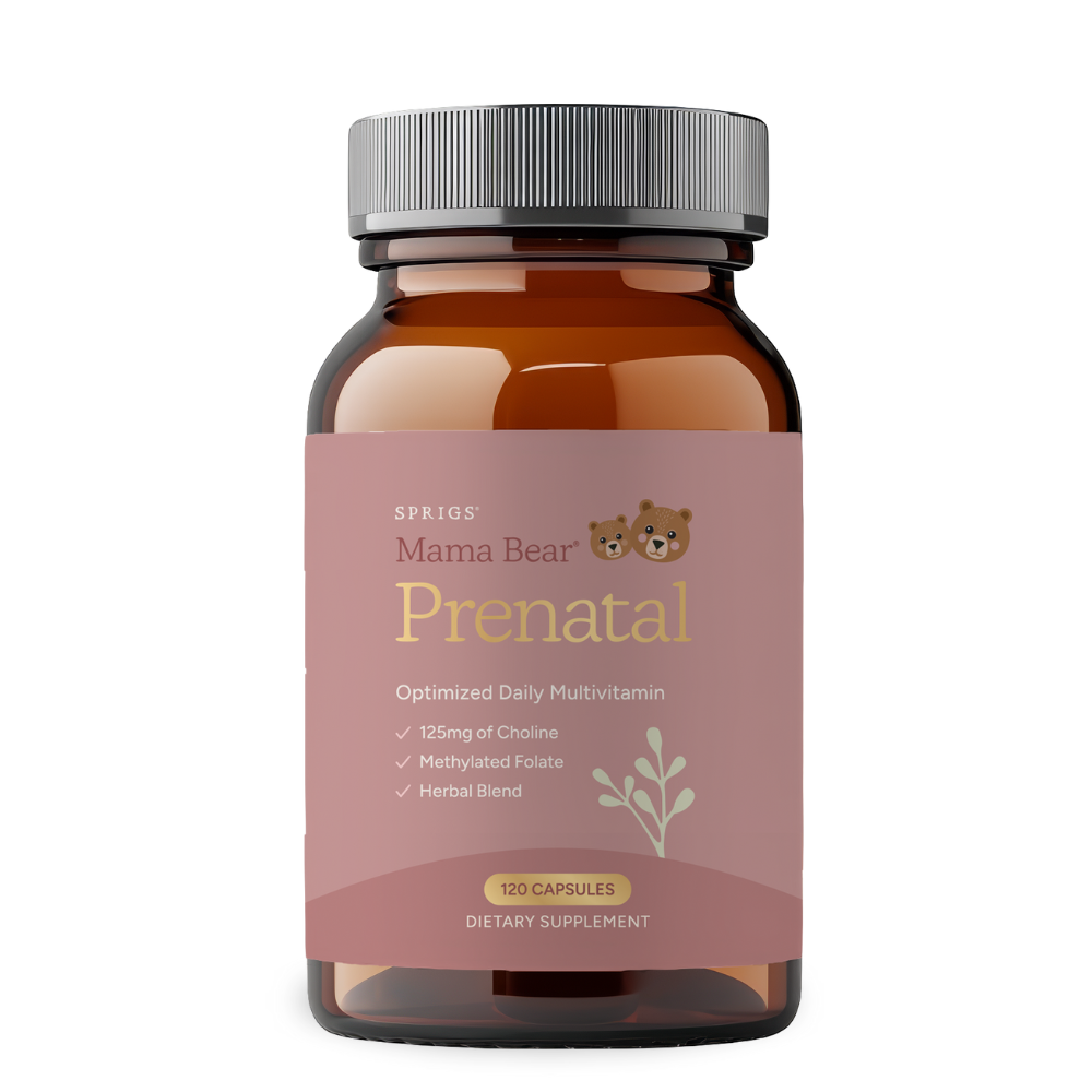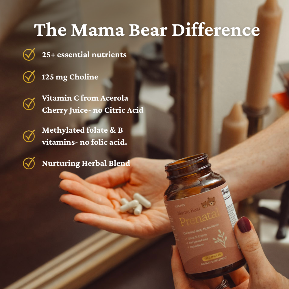 Mama Bear Prenatal now includes choline, plant-based vitamin C from acerola cherry juice, and upgraded forms of several key nutrients (like B vitamins, vitamin D3, zinc, and selenium)..